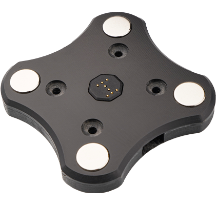 POGO MagBoost est un dock magnétique qui assure par broches POGO Pins la connectivité sans fil avec le POGO Récepteur et offre ensuite de multiples combinaisons de fixation avec l'écosystème TabMount.